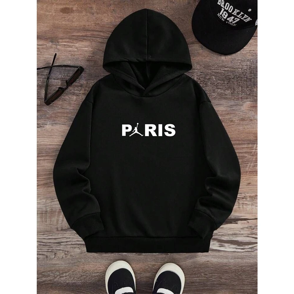 First Copy Cotton Printed Paris Hoodie For Men, Black