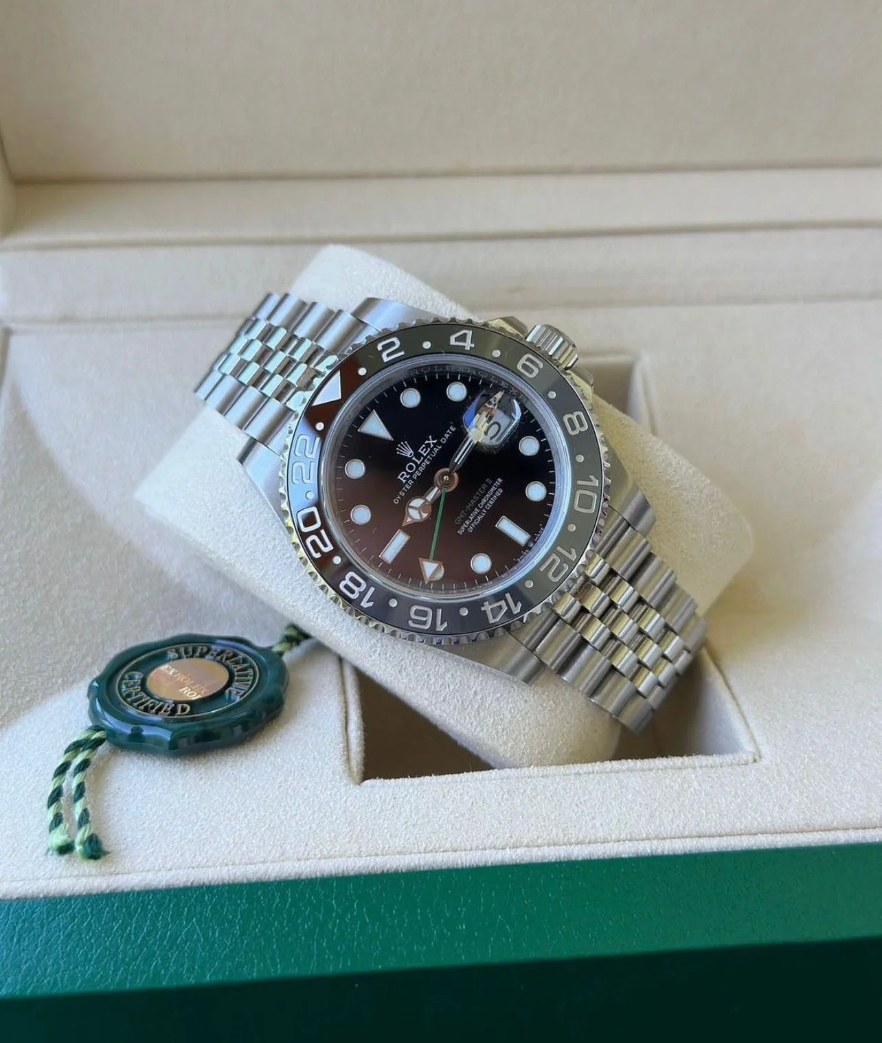 Packed in a Rolex brand name box, this watch is ready to impress with its premium quality and precise craftsmanship.